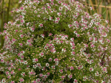 Maintenance: cut back calico aster 4th of July weekend for a tidier and more floriferous fall show